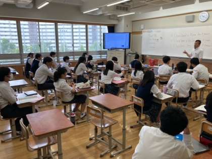 ALTのイターナ先生に授業に入ってもらい,英語の授業を進めていきました。英語の会話力の向上を目指し,日々,奮闘中です。