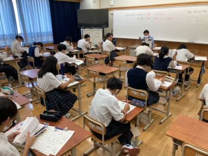 総括考査が返却されています。自分たちの答案を見て,一喜一憂していますが,そこは8年生。すぐに切りかえて今度は,学習確認プログラムに照準を合わせているようです。頑張れ8年生!