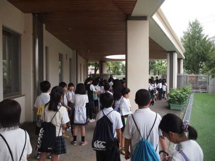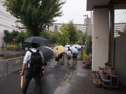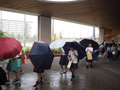 雨の中、4年生は元気に科学センターへ出発していきました。