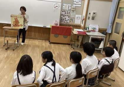 朝の読書時間に読み聞かせサポーターの方が教室まで来てくださり、絵本の読み聞かせをしてくださいました。