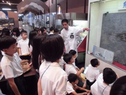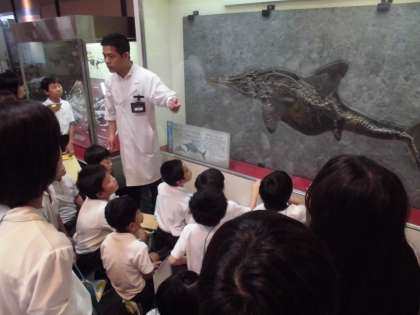 魚竜の化石を見て今の魚と何が違うのかを考えていました。