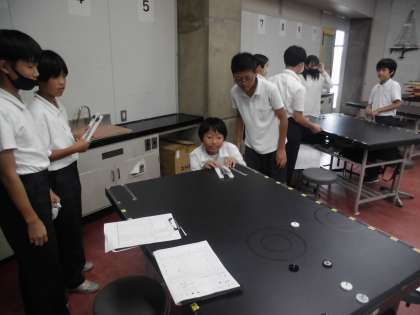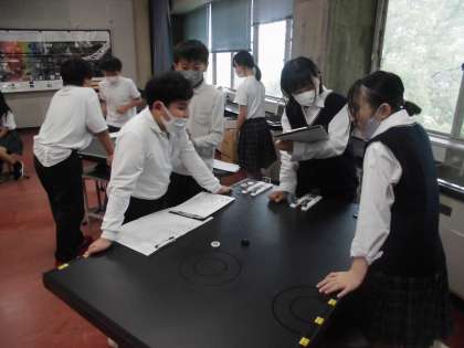 実験データを用いて、おはじきカーリングをしました。