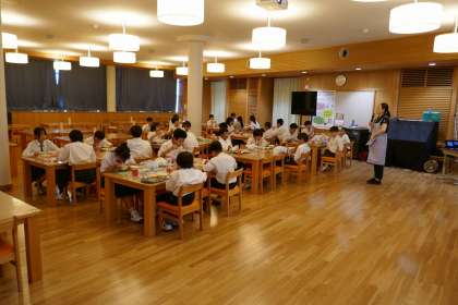 2組がランチルーム給食でした。いつもと違う広い部屋での給食の時間を楽しそうに過ごしていました。しっかり食べてしっかり勉強しよう!