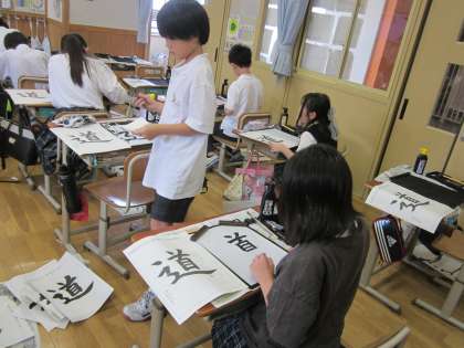 毛筆で、「道」という字を書きました。