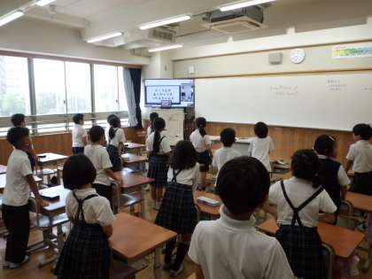 ベーシックステージの朝会がありました。 朝から元気いっぱいの歌が教室に響き渡りました!