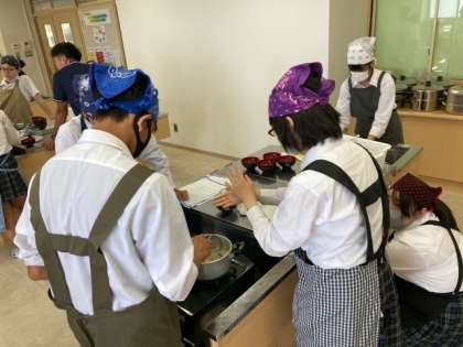 5限に8年4組が調理実習をしていました!その様子を取材しました!
