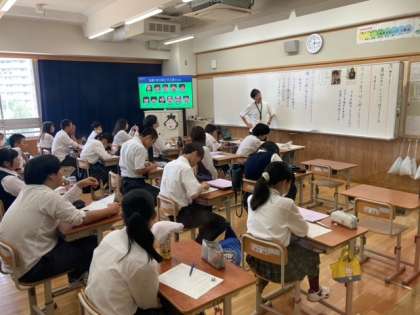 9年生の道徳では,映像資料「ココロ部」を見ながら,集団の中でどう生きるかを考えました。SNSでのやりとりに9年生のみんなは心当たりがあることもあったのではないでしょうか。真剣な意見交換が見られました!