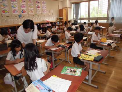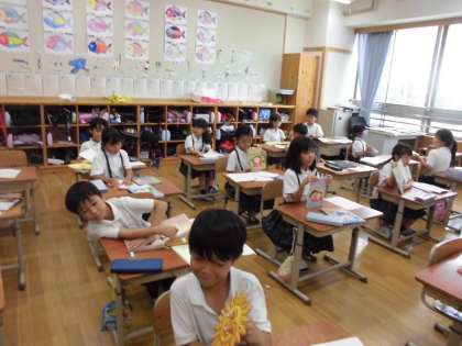 友だちに自分のお気に入りの本を紹介する学習です。まずは紹介メモを作ります。本の題名、作者、あらすじ、自分の好きなところをメモにしていきます。メモができあがったら練習です。自分のお気に入りの本が、友だちにもお気に入りになったら嬉しいな。