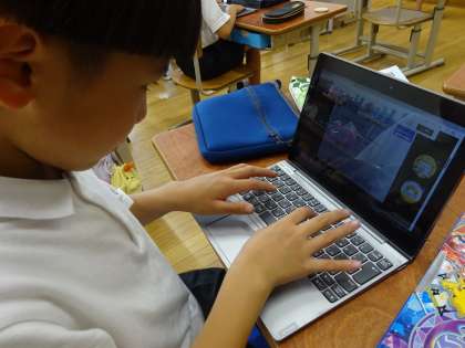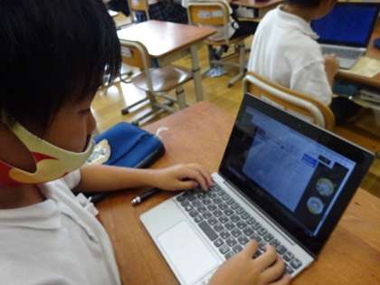 授業の中でGIGA端末を使って調べたり、まとめたり、考えたりする学習が増えてきました。最近では学習の合間を使ってタイピングの練習をしています。休み時間にも積極的にタイピングの練習をしている姿をよく見かけます。みんな、とても集中して取り組んでいます。