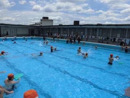 壁をけって伸びたあとにバタ足で前に進む力があると25m泳ぎ切る目標に近づけますね。