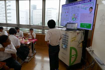 人数が多い中で、当番を中心に日々協力して準備をしてくれています。写真は、いただきますの前にメニューの確認をしている所です。献立の意味も考えながら、美味しく楽しく食べましょうね。