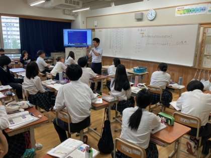 9年生の生物ではDNAのことについての授業でした。DNA(デオキシリボ核酸)は,簡単に言うとヒトの設計図。髪の毛一本からでもDNAを採取できるということでみんな興味津々。「先生,まつげからはDNAとれるかな〜?爪は〜?指紋は違うか〜。」活気あふれる授業となりました。