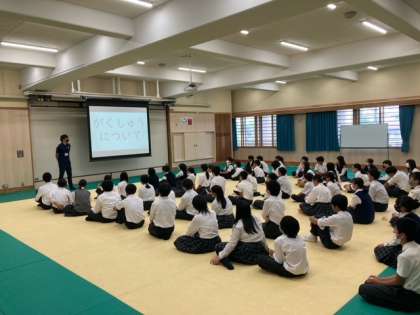 学年の先生方から,ムカイジマン表彰,夏休みの学習,夏休みの生活について,1学期の総括を話していただきました。夏休みが明けて,みんなのパワーアップした姿を想像して期待感が高まりました。