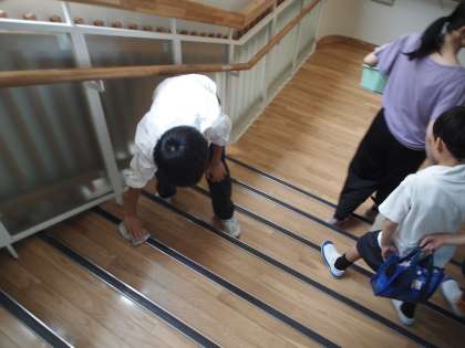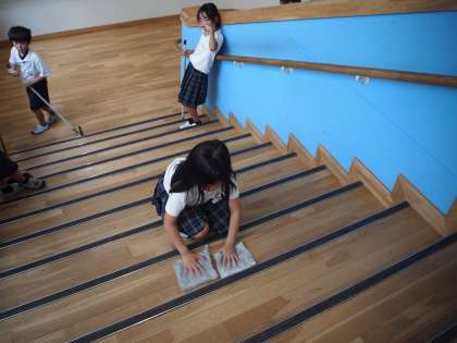 青階段は、学校の中で一番たくさんの人が通るところです。