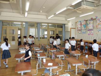 今日は始業式がありました。真剣な表情でお話を聞くみんなの顔に、2学期へのやる気が感じられました。途中、宝探し形式で楽しむ場面もあり、とても楽しそうな様子でした。2学期もこの調子で頑張ろう!