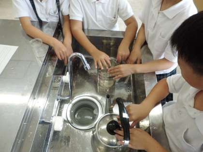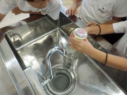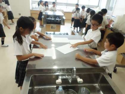 今日の算数では、いろいろなもののかさ調べをしました。予想してから実際のかさを調べる活動で「(水が)全然入らなかった!」「(水が)めっちゃ入った!」という声が聞こえてきました。かさマスター目指して頑張ろう!