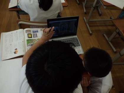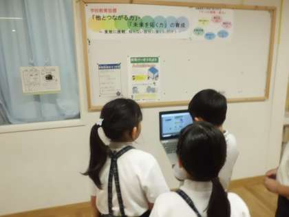 今日は学校内のポスターや看板を探して、写真をとる活動をしました。