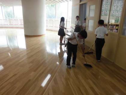 8年生も手伝ってくれる中、一生懸命に掃除しています。