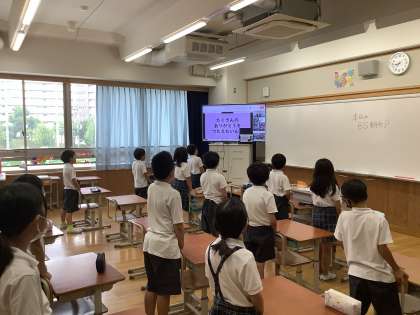 朝会では、書写・図画工作の学習で取り組んだ作品でみごとに賞を取った人が表彰されました。表彰の様子を見て、「○○さんすごいね」ととても大きな拍手を送る3年生の背中はとても温かかったです。
