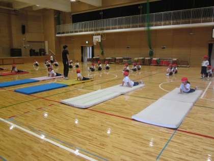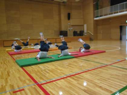 体育のマット運動ではいろいろな技にチャレンジしています。