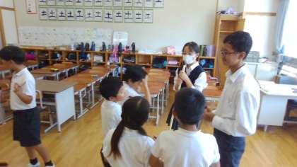 掃除を始める前に7年生と一緒に今日の目標やめあてを話し合って決めます。