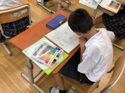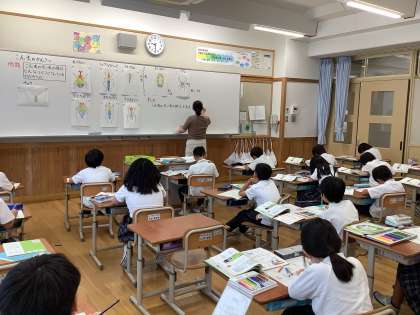 どこから足が生えているのかや、体のつくりはどのようになっているのかをそれぞれの虫ごとに観察し、ワークシートに記入しています。