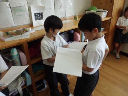国語での交流の様子です。 カタカナで作った文章をペアで交流しました!