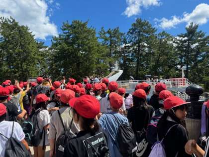 天橋立に到着し、旋回橋をわたる船に手を振って挨拶しています!