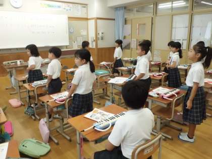 今日の音楽の様子です。 音楽の部に向けて、演奏や歌に取り組んでいます!