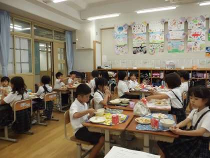 昼休みに遊ぶために、もりもり食べてエネルギーを充電しています!