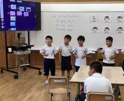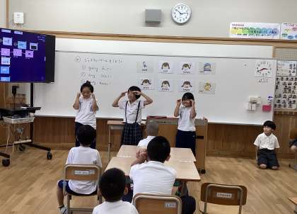 先生の英語にすばやく反応してジェスチャーをするゲームです。
