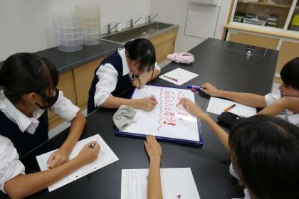 ろうそくの火が離れているのに、もう一度つくのはなぜだろうか?という問いの中で、各グループが実験を通して意見をまとめている様子です。疑問と向き合い、なるほどと思える答えを導きだしていきましょう。