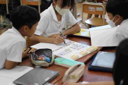 数図ブロックを上手に説明したり、ホワイトボードに上手にまとめたものを発表しています。どんどん発表や話し合いが上手になっていますね。