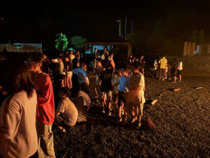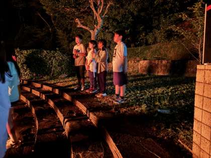 キャンプファイヤーが始まり、クラスの出し物を楽しみました!