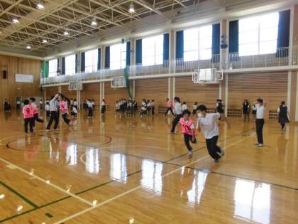 昼休みに9年生とピア交流遊びとして氷鬼を行いました。