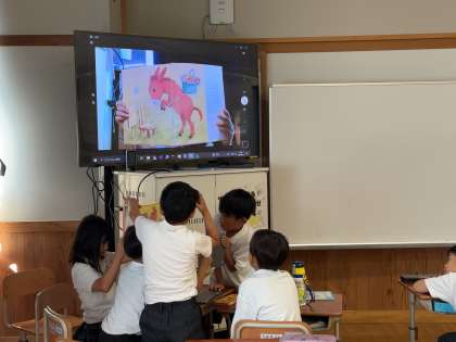 この日の朝学活では読書係さんたちから絵本の読聞かせがありました。