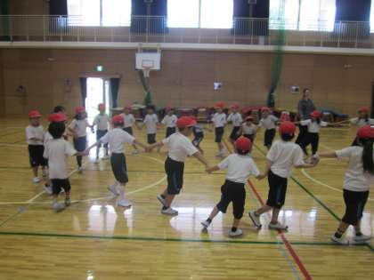 みんなで「タタロチカ」を踊りました。音楽に合わせて手をたたいたり、みんなで手をつないだりしながら楽しく踊ることができました。