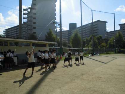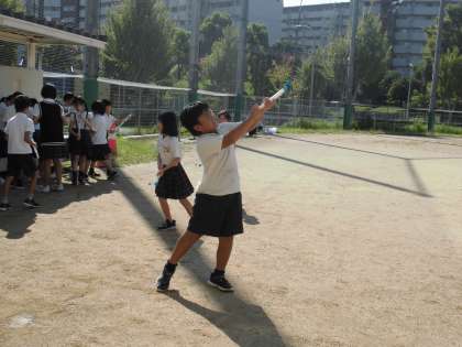 今日は運動場に出て水鉄砲で実験をしました。 楽しい学習ですね。