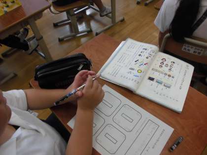 「赤・白・黄・黒」これは「色」のなかまです。こんな風に子どもたちも問題作り。