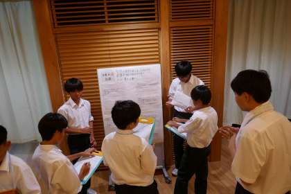 続いて、Bグループが発表している様子です。聞き手側もワークシートにメモをとりながら、真剣に発表を聞いていました。