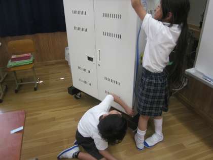 今日の算数の授業では、テープを使ってながさくらべをしました。