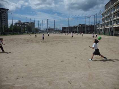 ドッジボールをして遊んでいます。みんな日に日にボールが速くなっており、キャッチするのも大変です!
