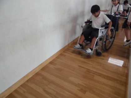 高齢者体験では普段歩いている場所や階段の大変さを知ることができました。