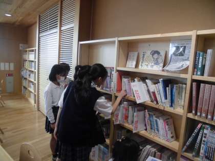 今日は、図書館で、どの本を絵にするか選んでいました。