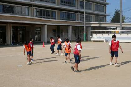 残暑がまだ厳しい中、グラウンドでは元気に体育をする7年生の姿がありました。アルティメットという競技のルールを確認しながら、楽しく取り組んでいました。みんなの頑張りを応援する後ろ姿も素敵です。
