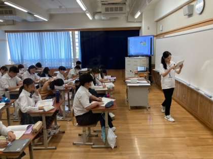 8年生には教育実習生の先生も2人参加してくれています。道徳の授業も行ってくれています。