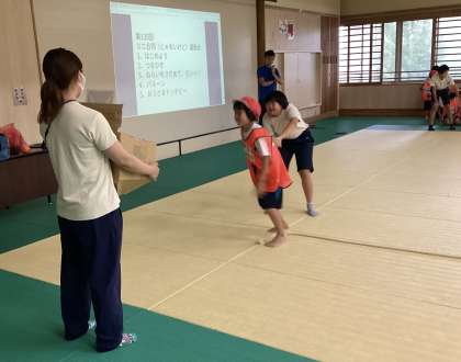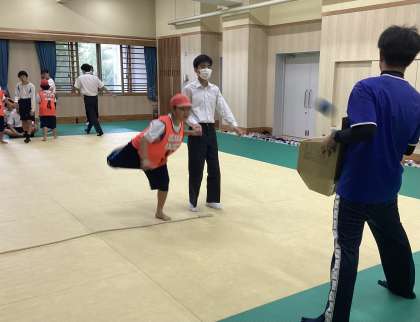 「ねらいをさだめてエイ!」では、保護者役の上級生と一緒に走りました!
