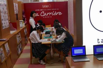 午後は、就活準備の実践体験を行いました。事前に決めていた企業ブースで、自己分析に取り組みながら、企業研究にも取り組んでいました。企業とのマッチング度合を分析しながら、意欲的に働くことについて考えていましたね。