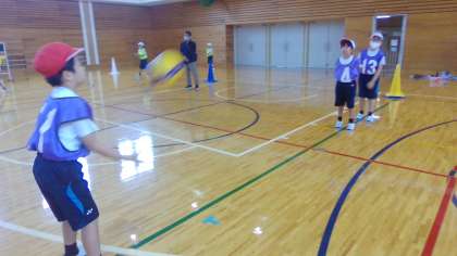 素早くパスすることが苦手と感じるチームはリズムよくパスする練習をしていました。