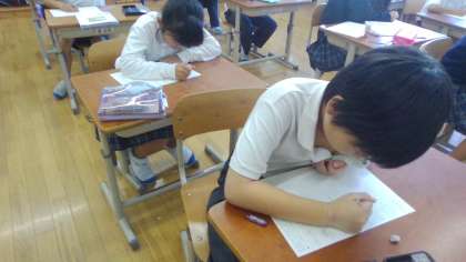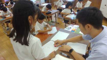 チャレンジタイムでは今まで学習した漢字を復習しています。まずは自分の力で解き、最後は裏面を見て見直し、答え合わせをします。担任の先生に「ここ、はねるの忘れているよ!」とチェックをもらい「ほんまや〜!」と書き直しをする子もたくさんいます。漢字に苦戦中ですが、いつかスラスラと書けるようになるはず!がんばれ!3年生!